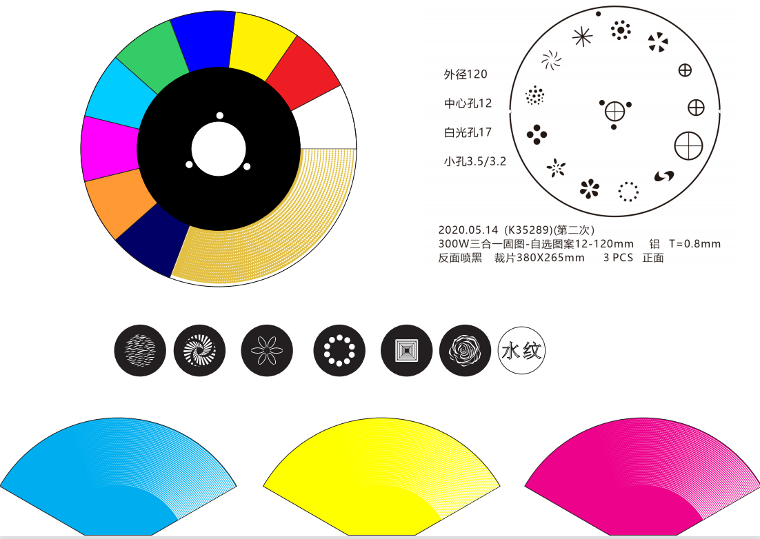 1個固定圖案盤,17個精致圖案(14個固圖+3個波圖) + 白光