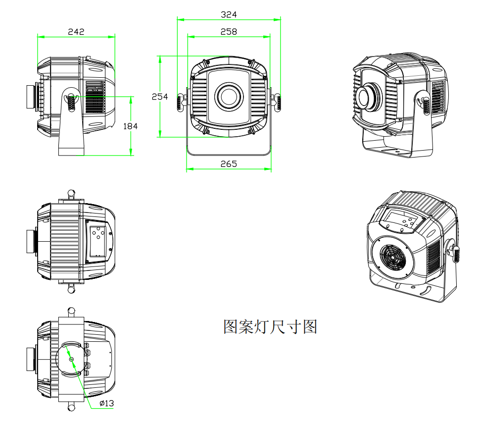 圖案: 旋轉(zhuǎn)圖案盤,5個圖案+1個白光