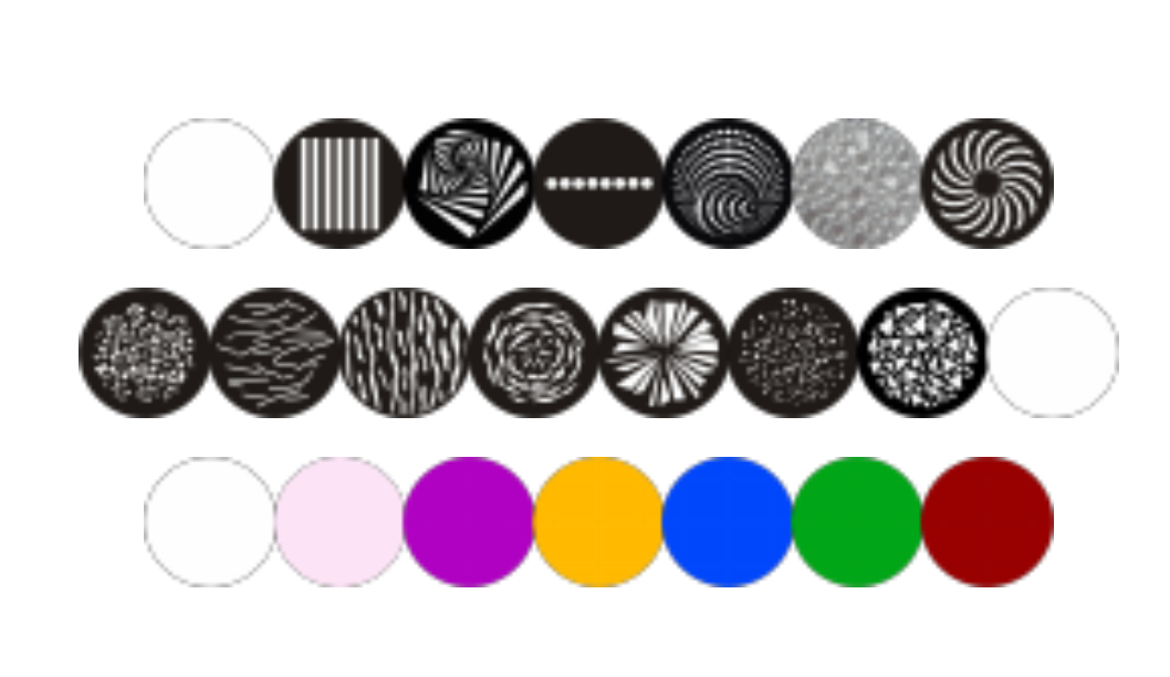 旋轉(zhuǎn)圖案盤(pán):6 個(gè)插拔式的可更換的旋轉(zhuǎn)圖案片+白圓,可雙向旋轉(zhuǎn),帶圖案抖動(dòng)功能,速度可調(diào)。