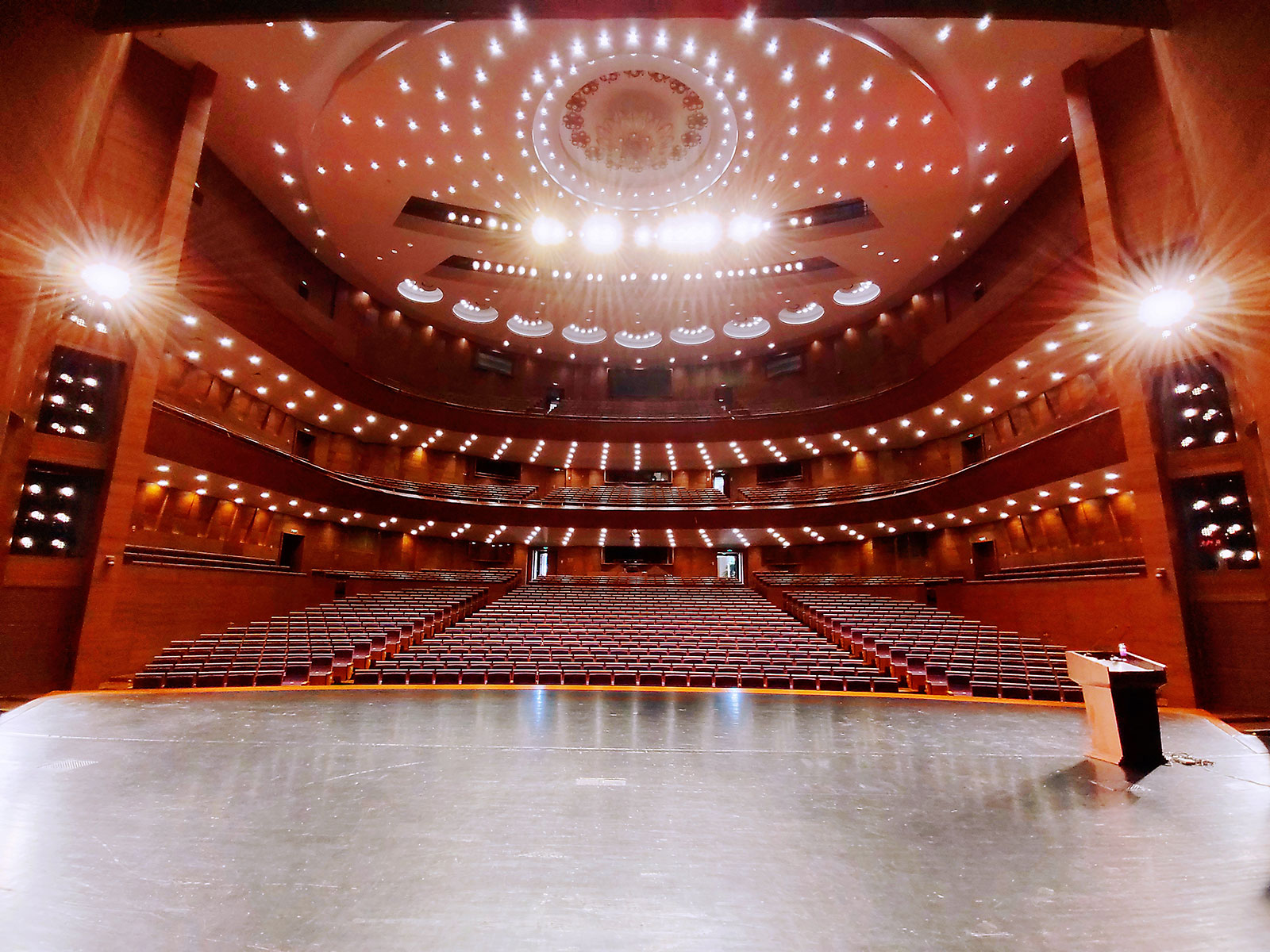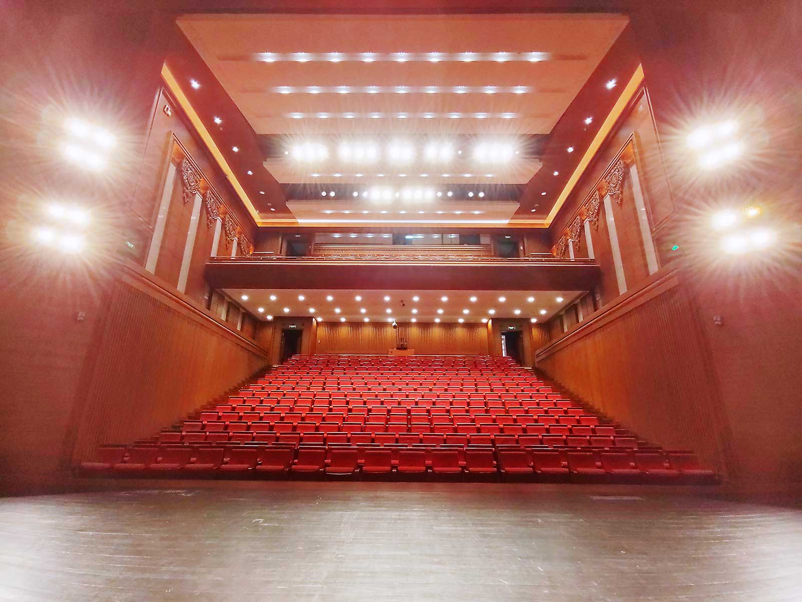 觀眾廳共有510個座位,設有池座和一層樓座。舞臺臺口寬12米,高7米。按專業(yè)演出要求配置燈光、音響和舞臺機械,主要用于舉辦音樂會、話劇、歌劇、舞劇等中型演出和各類大中型會議。